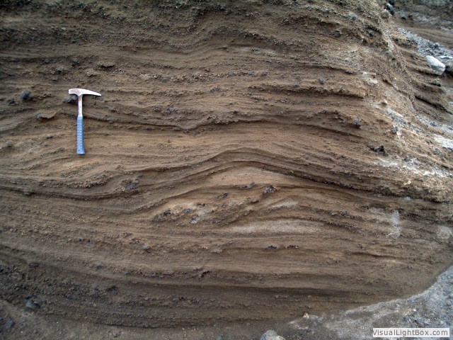 tuff cone consiss of wavy to cross-bedded ash deposits formed by