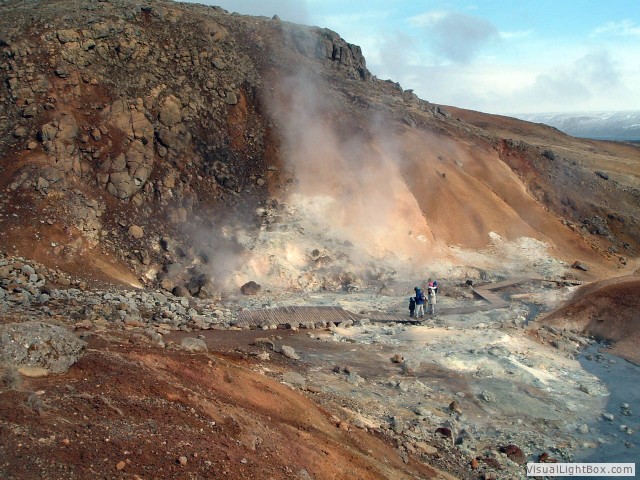 types of edifice in high temperature areas, fumeroles and solfataras.