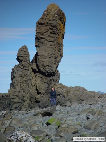 Karl, the sea stack rising, about 300 m off shore. Theolder cone,which
